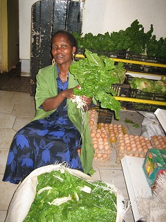 ところで、我が家のお手伝いさんを含めてケニアの人たちが野菜を調理するとき、いつも不思議に思うことがあります。スクマでも、緑の葉の部分しか食べないのです。 日本人の主婦感覚だと、白い茎の部分も味噌和え、おひたしにすれば、おいしいのに…とか考えますが、ケニアの人たちはスクマが不作で値段が高騰している時でも、ばっさりと気前よく茎を切り落として捨ててしまいます。