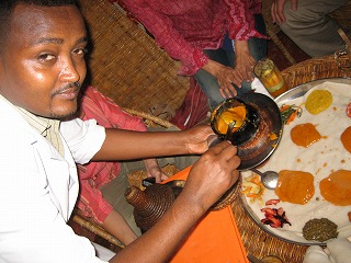 この酸味のせいで、好き嫌いがはっきり分かれる、と、日本人の友人は言います。 私は初体験だったので、この酸味が少し気になりましたが、「3回も食べれば慣れるものよ」と、インジェラ好きの友人は断言してました。