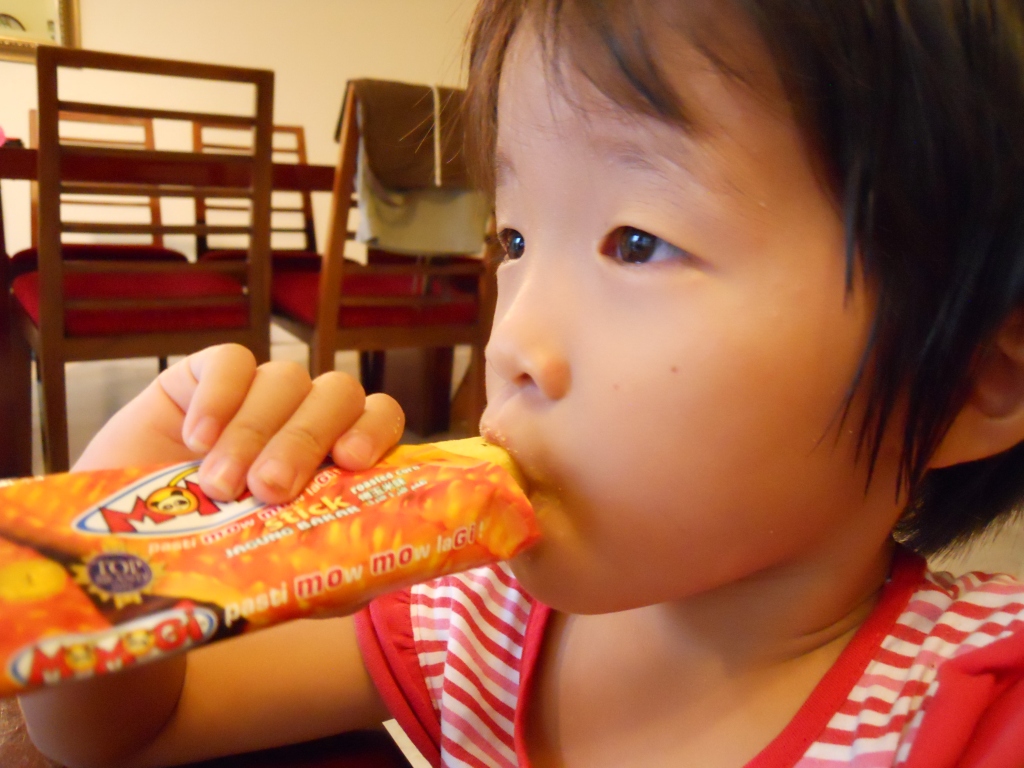 カールやうまい棒みたいな味ですが、値段がすごく安い。2本入りで550ルピア(約5円)。20個入りをまとめ買いしても、約100円です。チーズ味、チョコ味、コーン味、フルーツ味、コーヒー味がありますが、我が家のお勧めはチーズ味です!