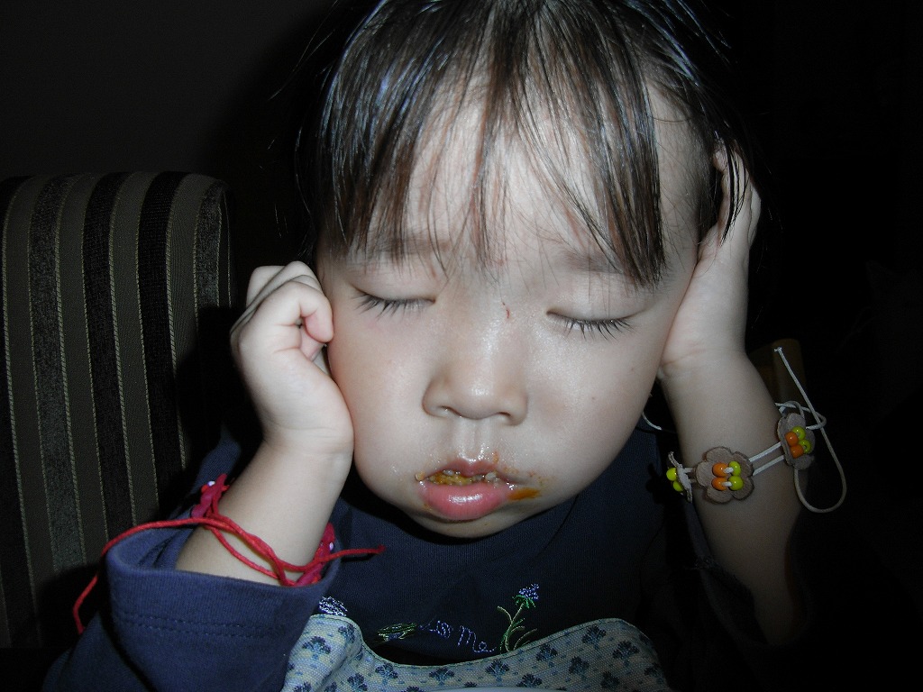 どこででも寝ます・・・zzz おやつを食べながら、イスの上でも、床でも。