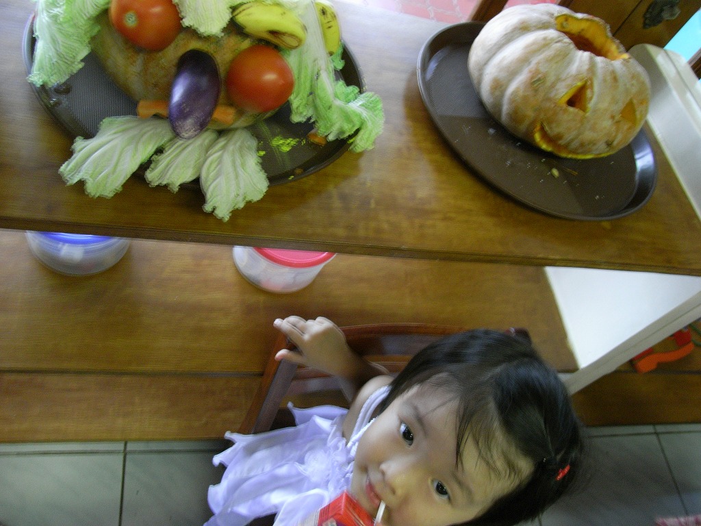 園長先生も先生たちもシッポがついていたり、耳をつけてたり。魔女のコスチュームを着ていたママもいました。楽し~い!