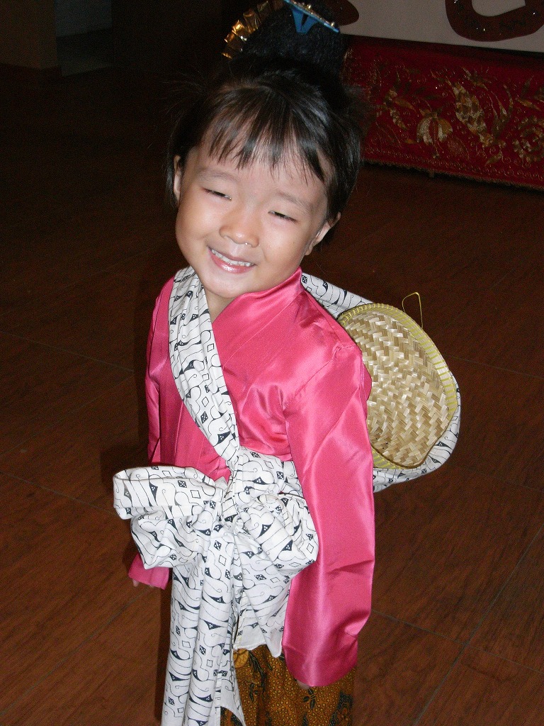 日本だと幼稚園年少さんの年頃のナナですが、JJSジャカルタ日本人学校幼稚部は2年保育なので、近所のインターナショナル幼稚園のディスカバリーに通ってます。9月生まれからクラス編成しているので、クラスの中ではお姉さんのはずなのに、クラスで一番小さいので、外国人のお友達に赤ちゃん扱いされていても、まんざらでもない様子のナナです。