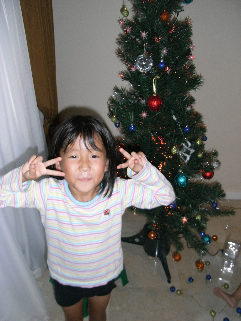 ネネの強い希望で選んだのはファイバーツリーです。私は本物のモミの木に近いツリーが欲しかったので、延々と説得を試みましたが、あえなく押し切られてしまいました。夫からも、大人げない、となじられる始末です。