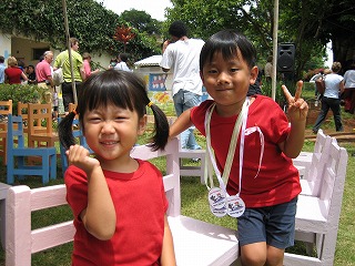 運動会では輪っかをくぐったり、走ったり。午前中で終わる簡単なものなので、日本とは違い、お弁当の場所取りなどはありません。でも、やっぱり、どの国の親も全く同じだなあ、と感心します。みんなビデオとデジカメを両手に持ち、わが子の姿を熱心に撮ります。ゴールした後の子を抱き締め、大げさに褒めてあげたりもしています。障害のある子が頑張って走る姿には、みんな拍手して応援し、親も参加するレースでは、年甲斐もなく、みんな真剣そのもの。ちなみに夫も私も参加し、親子で楽しみましたが、徒競走でビリだったハルは「ママ、僕、ナンバー・ラストになって、ごめんね」と少し悔しそうに小声で言ってました。ネネは呑気さんなので、楽しんだのかどうか、よく分かりませんでしたけど。