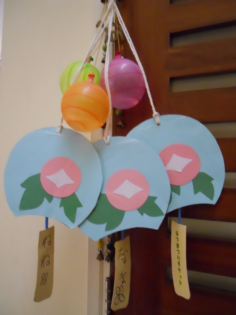 ← 縁日ごっこのスタンプラリーチケットと夏祭りお土産のぼんぼん。