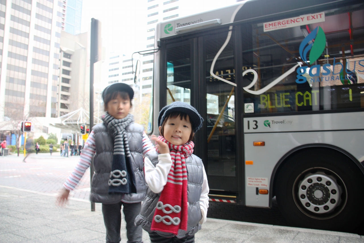 ←パースでは無料の「CAT BUS(猫バス)」が走っています。ぐるりと町並みを見学するのに便利ですし、歩き疲れてすぐに文句を言う子連れには、大変重宝しました。