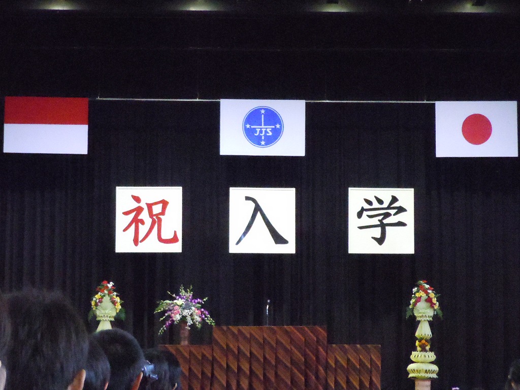 4月12日 インドネシアジャカルタ日本人学校(JJS)の入学式がありました。中学一年生59人、小学一年生108人の入学式です。