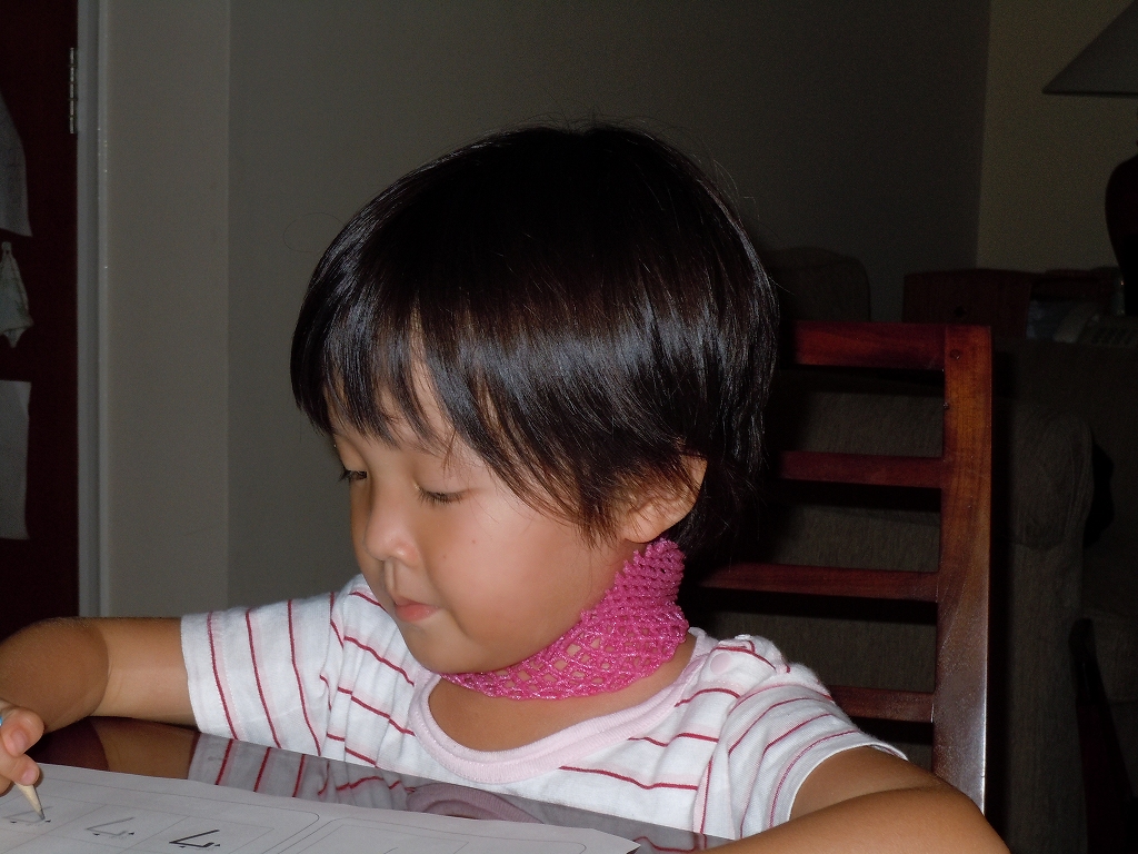 一年生になり、お兄ちゃんとイスを並べて一緒に宿題をしています。競って大きな声で音読をしたりするので、全然聞きとれませんが(苦笑)。