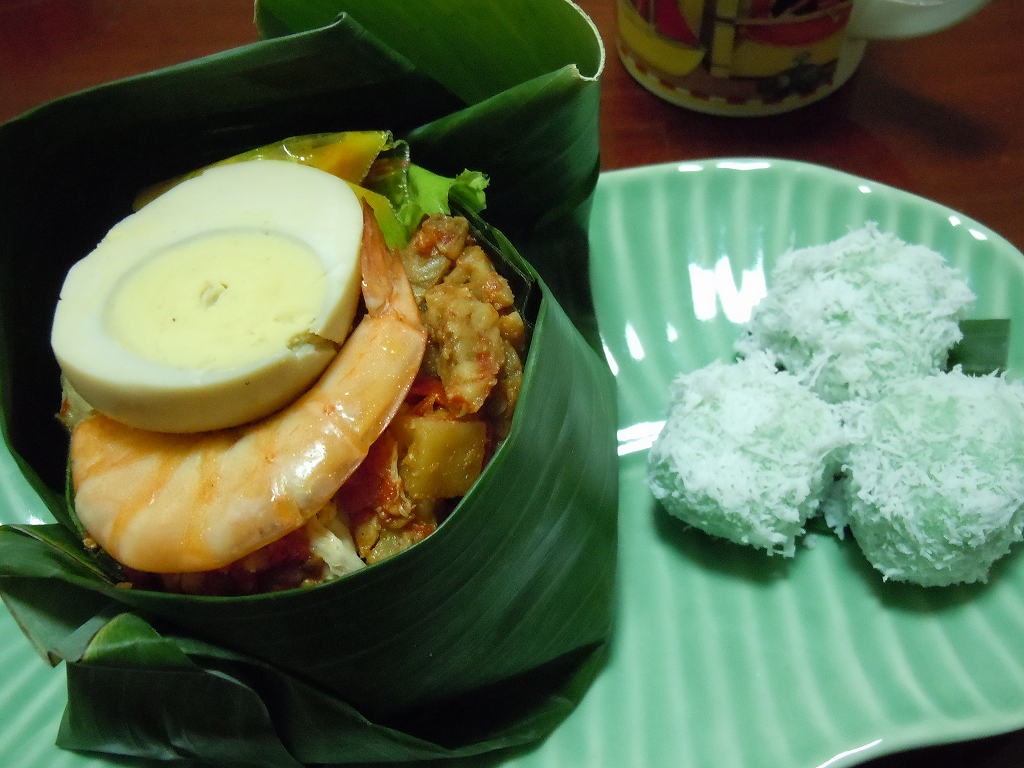 今日の私のランチ↓ 「NASI BALI」(約180円)とデザート「KLEPON」クレポン(約27円)