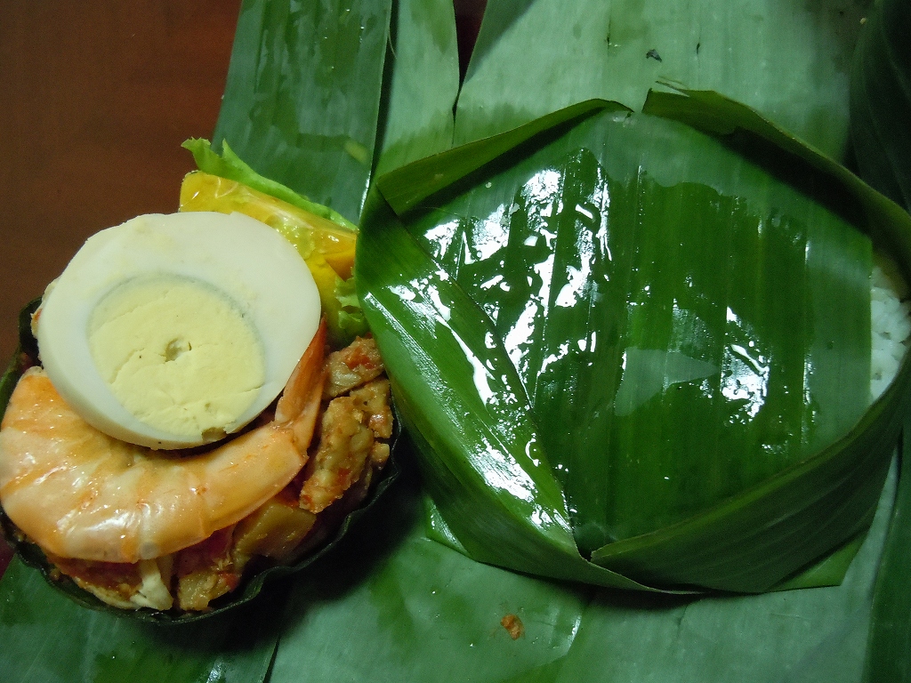 小さいながらも、おかずは充実していて、卵、エビ、テンペ、魚のすり身、ピクルスなどなどです。