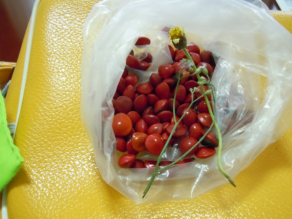 バックの中から、子供たちが「幸せの実」と呼んでいる、つるつるの真っ赤な実がいっぱい出てきました。せっせと集めてるナナの姿が目に浮かびます。今日もいっぱい遊んでお疲れ様でした。私も疲れましたぁ~~。
