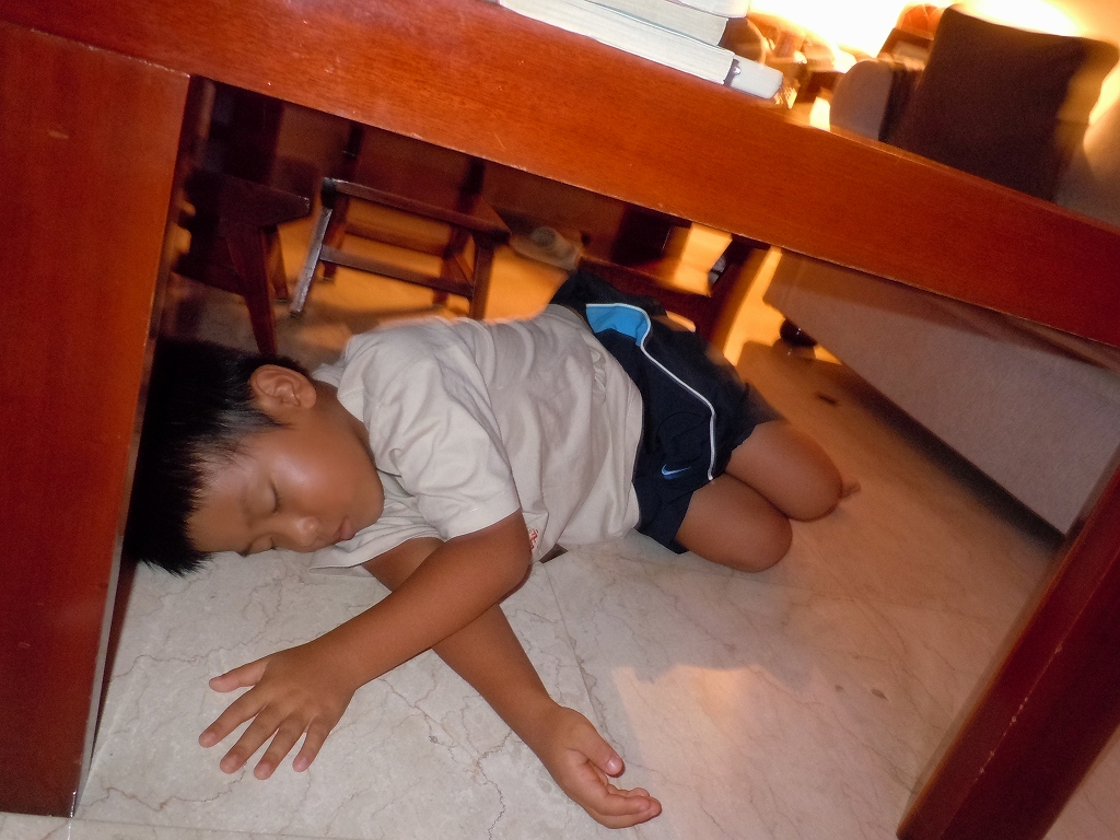 翌朝「どこに行ってたの?」と聞いてみると、「(敷地内で)滑り台してた」と言いました。30分の家出で彼は一体何を考えたのか? その後も相変わらず、態度は変わらず、私の小言は続いてます。