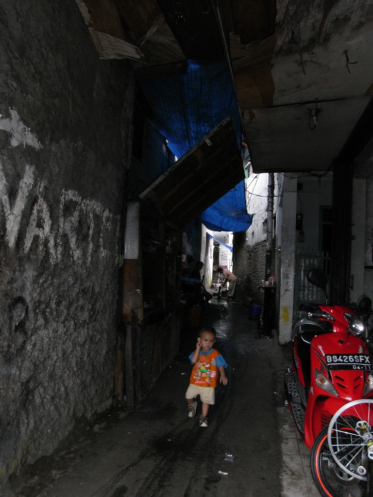 (写真左・・・自転車屋さん横の小路。子供がかわいい~)